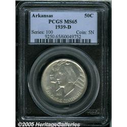 <B>1939-D 50C Arkansas MS65 PCGS.</B></I> This is a satiny Gem with sharp design elements and excellent eye appeal. The surfaces are fully brilliant with silvery white surfaces and exceptional luster.