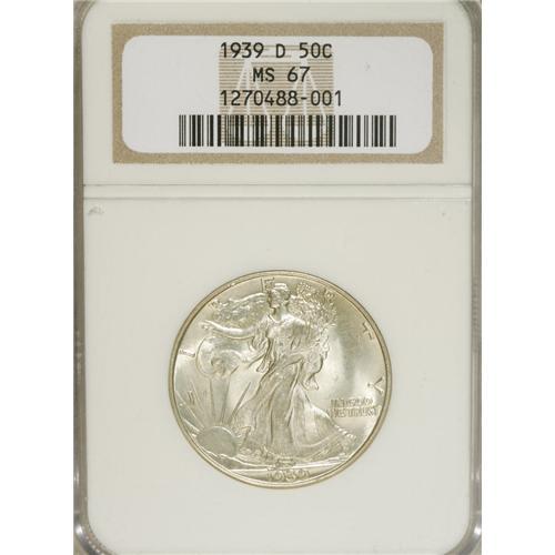 <B>1939-D 50C MS67 NGC.</B></I> Fully struck and satiny, this is a lovely alabaster-white Superb Gem. The '39-D remains a scarce and underrated 1939 issue. Census: 57 in 67, 2 finer (4/07).<BR><BR><b>Shipping:</b> Coins & Currency (<a target="_blank" href="http://www.heritageauctions.com/common/shipping.php">view shipping information</a>)