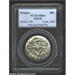 1939-D 50C Oregon MS64 PCGS. This is a pleasingly lustrous example whose otherwise silver-white surf