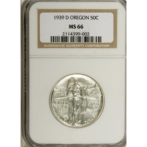 1939-D 50C Oregon MS66 NGC. NGC Census: (518/340).