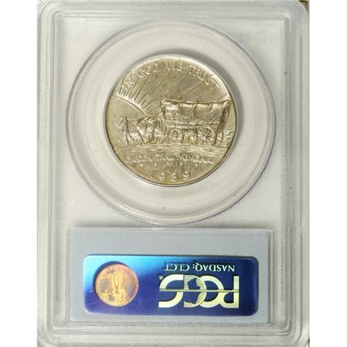 1939-D 50C Oregon MS66 PCGS. Wisps of violet, rose, an