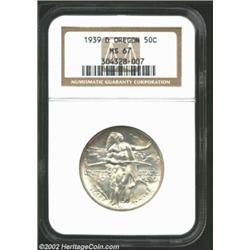 1939-D 50C Oregon MS67 NGC. A sharply struck and exquisitely preserved Superb Gem that has good lust