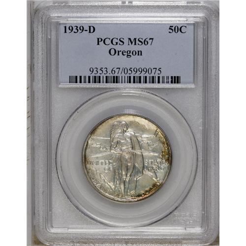 1939-D 50C Oregon MS67 PCGS. Arcs of reddish-orange ap