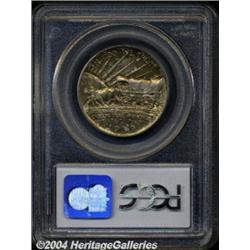 <B>1939-D<50C> Oregon MS67 PCGS.</B></I> A tab-toned Superb Gem with bright forest-green and rose-red colors except where protected by the tab in the cardboard holder of issue, where the present piece clearly resided for many years. (No cardboard holder accompanies the lot). Well struck, satiny, and exquisitely undisturbed. <BR><BR><B>Important notice:</B> Heritage usually auctions material at the rate of 200-250 lots per hour. On some occasions eBay Live bid software or the Internet may not be able to keep up with the pace of the auction. We recommend placing a realistic absentee bid now as insurance to avoid disappointment. Occasionally the auctioneer may eliminate or reject an eBay Live bid, and the auctioneer may also reopen a lot after the close of the eBay live bidding (usually because we missed an audience bid), and may reject your bid even if it shows you as the winning bidder. By bidding via eBay Live, you agree that Heritage may award the lot to another bidder at its sole discretion under the circumstances described above or any other reasonable circumstances. Since eBay bids are not shown to us until we open the lot on the floor, we treat those bids just like floor bids. In most cases the floor responds before the eBay bid is presented to us, due to Internet lag time, so for consistency we have made it a policy that floor bids are always considered first over tie eBay live bids. Also please note that all Heritage lots purchased through eBay Live carry a 20% Buyer's Premium. Please make sure you read the Terms and Conditions before you bid. </span></font></tr></table></td></tr></table>