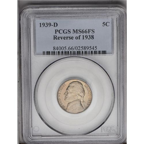 <B>1939-D<5C> Reverse of 1938 MS66 Full Steps PCGS.</B></I> A light blush of rose-gold covers both sides of this lovely piece, with the wavy, ill-defined-steps Reverse of 1938. Abundant luster is present, and there are no mentionable distractions. Population: 31 in 66, 4 finer (4/06).
