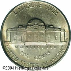 1939-D 5C Reverse of 1940 MS66 Full Steps PCGS. Ey <B>1939-D 5C Reverse of 1940 MS66 Full Steps PCGS.</B></I> Eye-appealing color variations are intermingled on both sides of this fully struck, lustrous coin. An essentially pristine representative of this key date Jefferson nickel issue. <BR><BR><B>Important notice:</B> Heritage usually auctions material at the rate of 200-250 lots per hour. On some occasions eBay Live bid software or the Internet may not be able to keep up with the pace of the auction. We recommend placing a realistic absentee bid now as insurance to avoid disappointment. Occasionally the auctioneer may eliminate or reject an eBay Live bid, and the auctioneer may also reopen a lot after the close of the eBay live bidding (usually because we missed an audience bid), and may reject your bid even if it shows you as the winning bidder. By bidding via eBay Live, you agree that Heritage may award the lot to another bidder at its sole discretion under the circumstances described above or any other reasonable circumstances. Since eBay bids are not shown to us until we open the lot on the floor, we treat those bids just like floor bids. In most cases the floor responds before the eBay bid is presented to us, due to Internet lag time, so for consistency we have made it a policy that floor bids are always considered first over tie eBay live bids. Also please note that all Heritage lots purchased through eBay Live carry a 20% Buyer's Premium. Please make sure you read the Terms and Conditions before you bid. This lot is being auctioned in conjunction with a live floor auction by Heritage Galleries & Auctioneers. All final auction and invoice information will be supplied by Heritage Galleries & Auctioneers, and all other information should be considered preliminary. Lot:5630