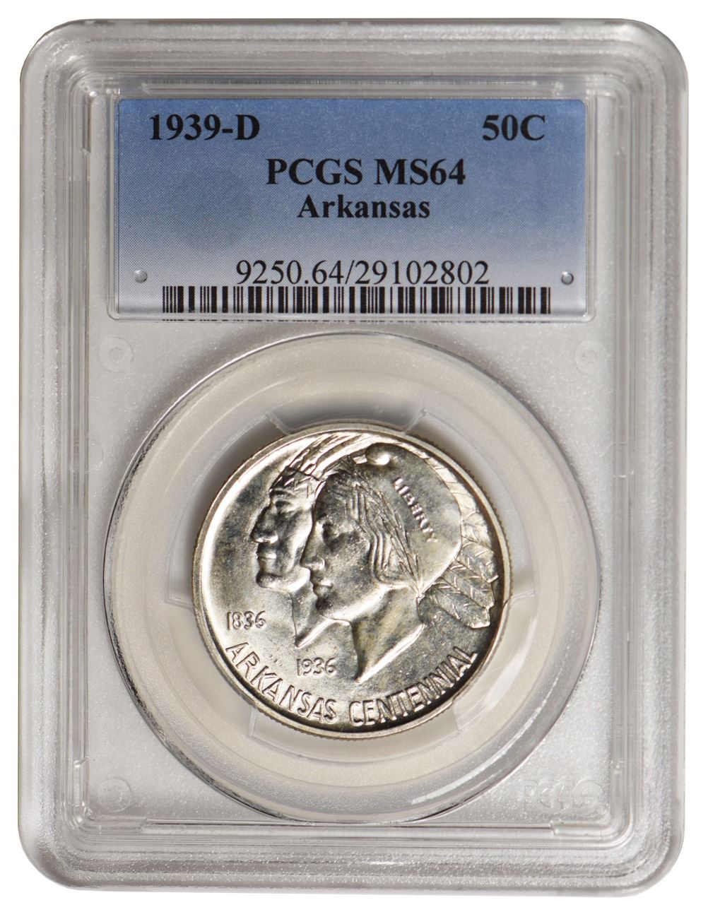 One 1939-D Arkansas Commemorative Half Dollar PCGS MS64.