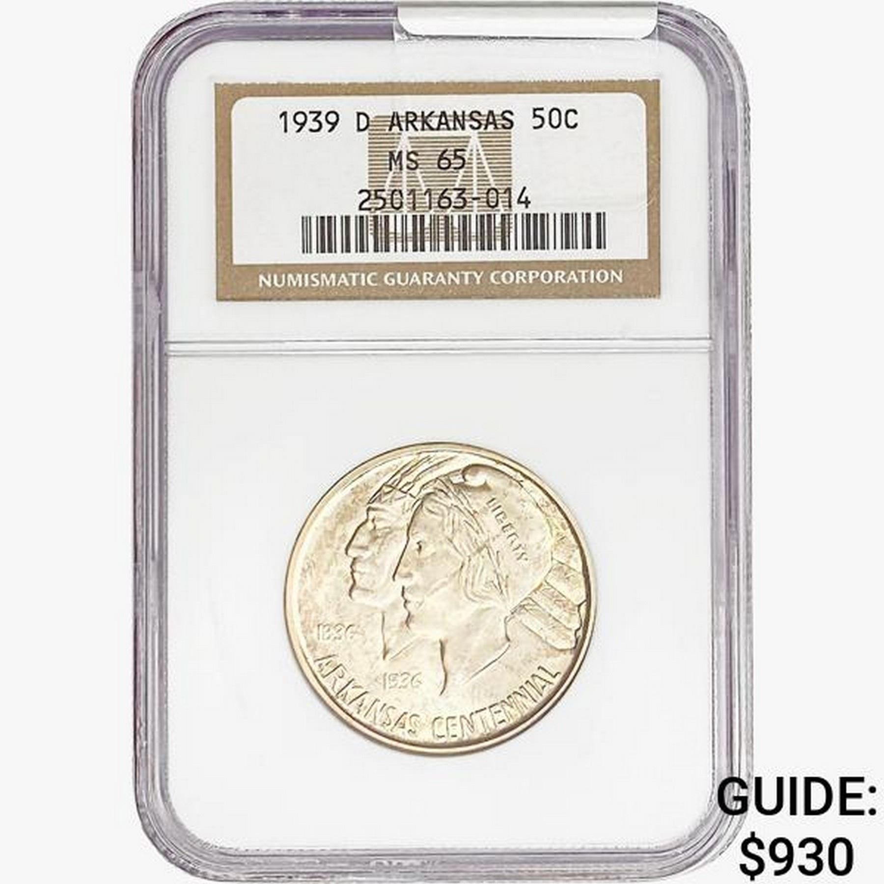 1939-D Arkansas Half Dollar NGC MS65