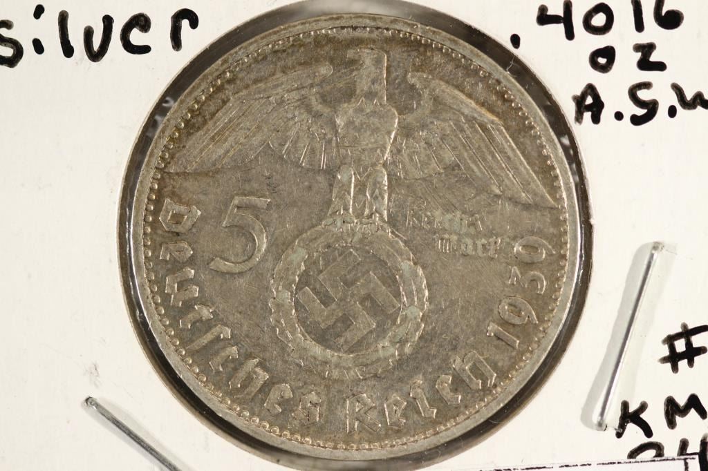 1939-D GERMAN SILVER 5 MARKS WITH SWASTIKA