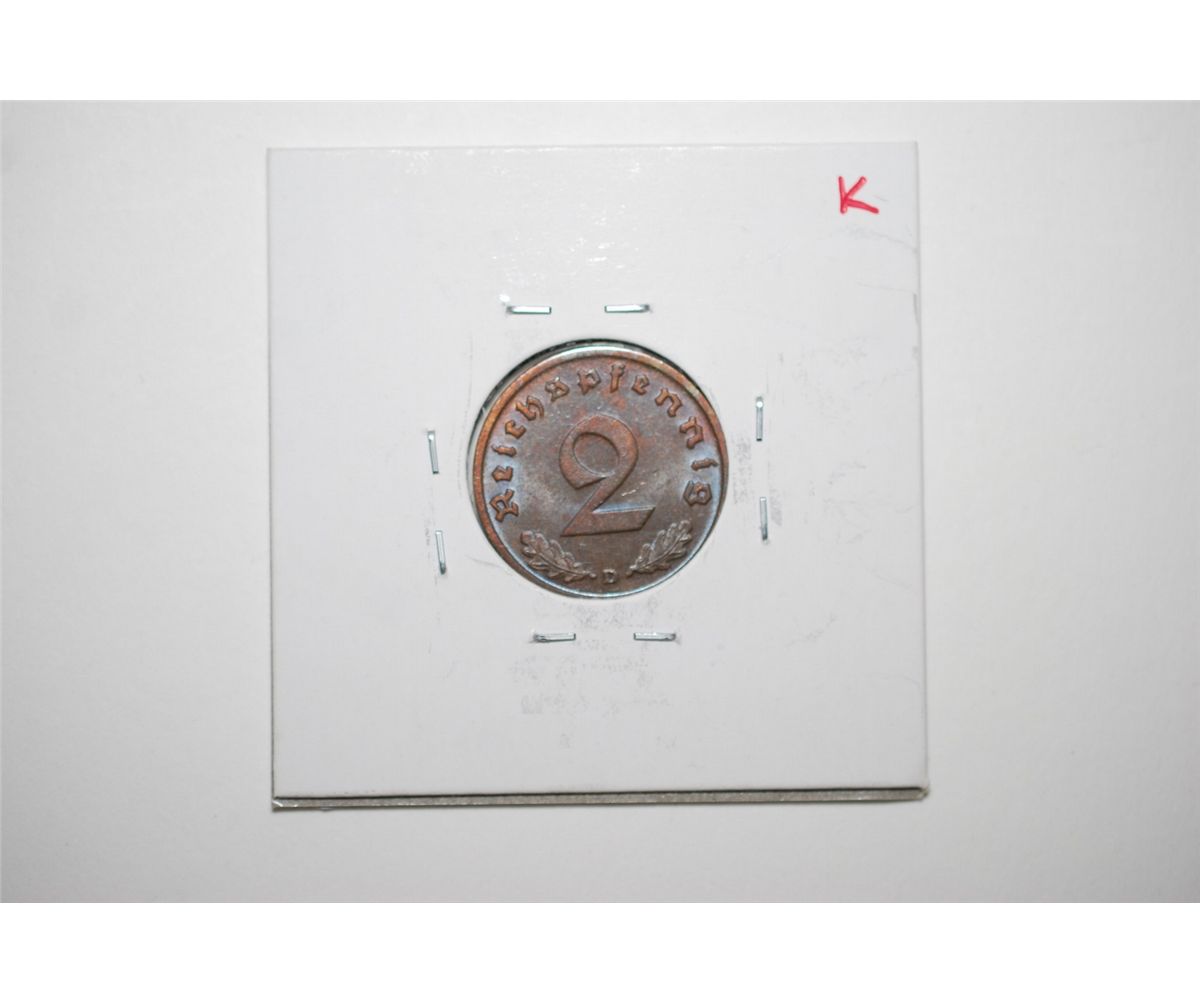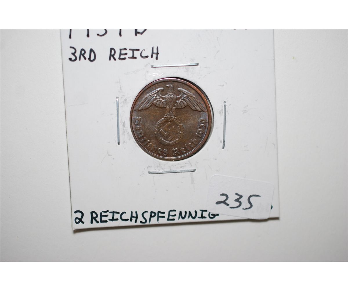 1939-D German 2 Reichspfennig Foreign Coin With Flying Eagle Holding Swatstika; BU; EST. $10-15