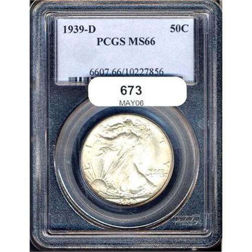 <b>1939-D Liberty Walking Half Dollar. PCGS graded MS66.</b> Gleaming fresh surfaces and color, with struck devices. No marks on Liberty <b>(PCGS # 6607)</b> <i>