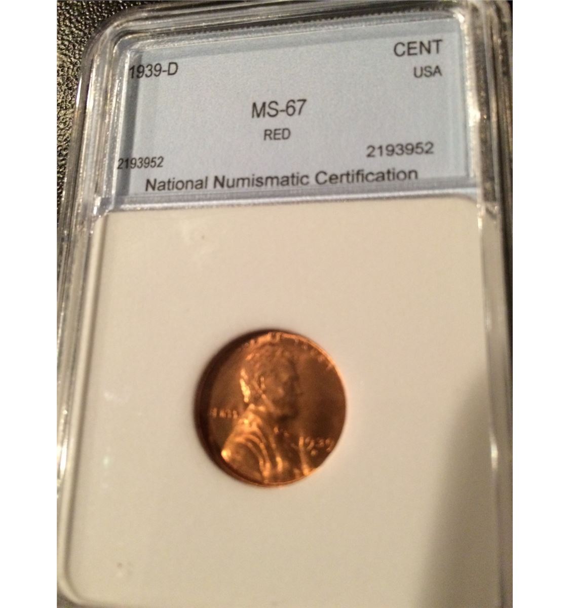 1939-D Lincoln Cent NNC MS67 Red