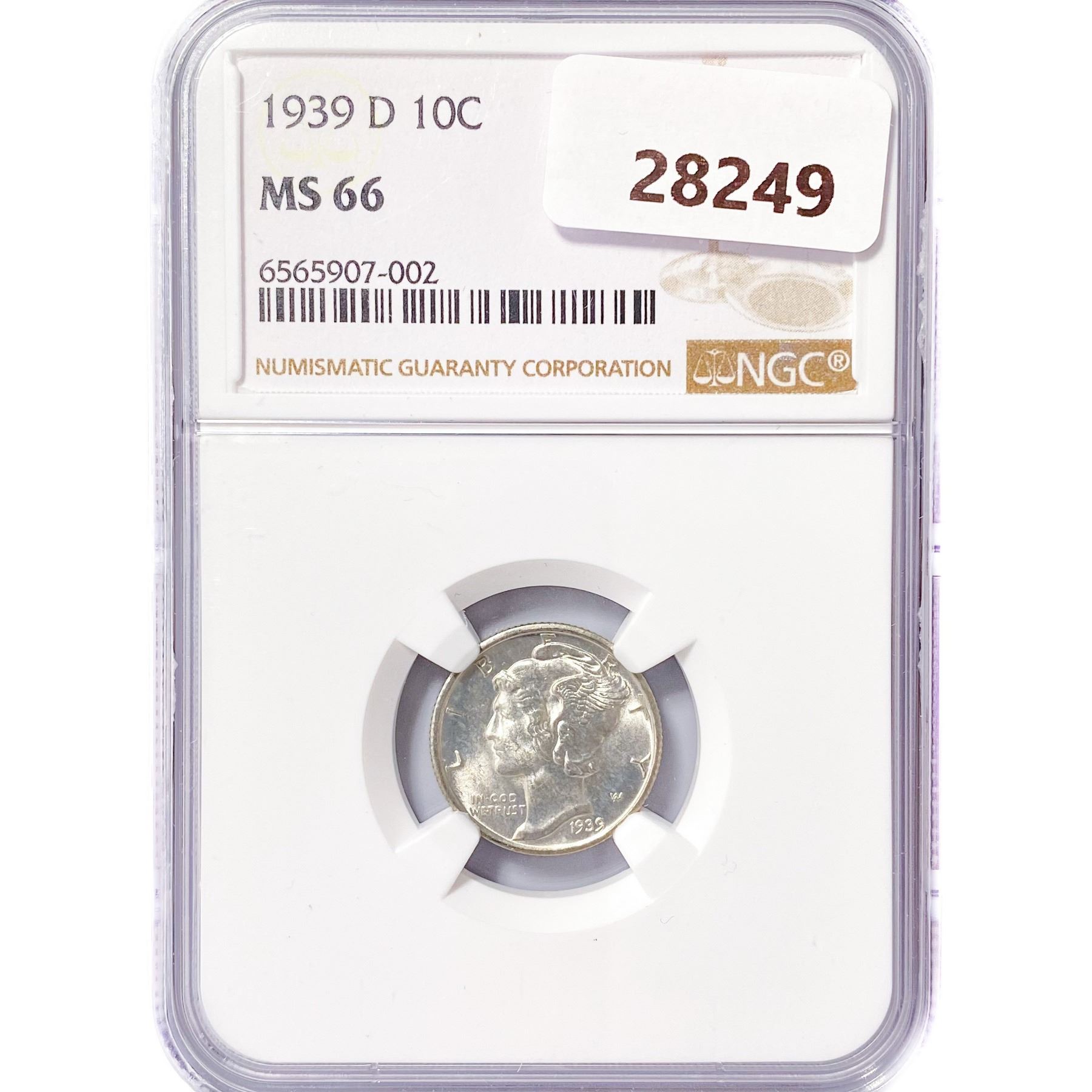 1939-D Mercury Silver Dime NGC MS66