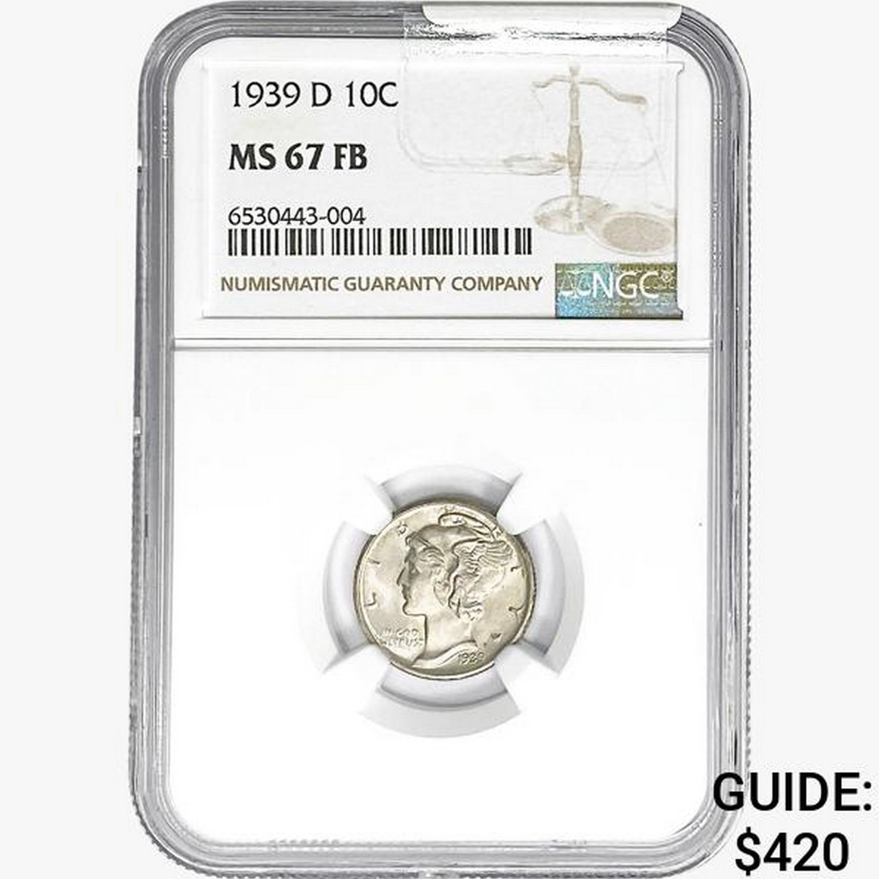 1939-D Mercury Silver Dime NGC MS67 FB