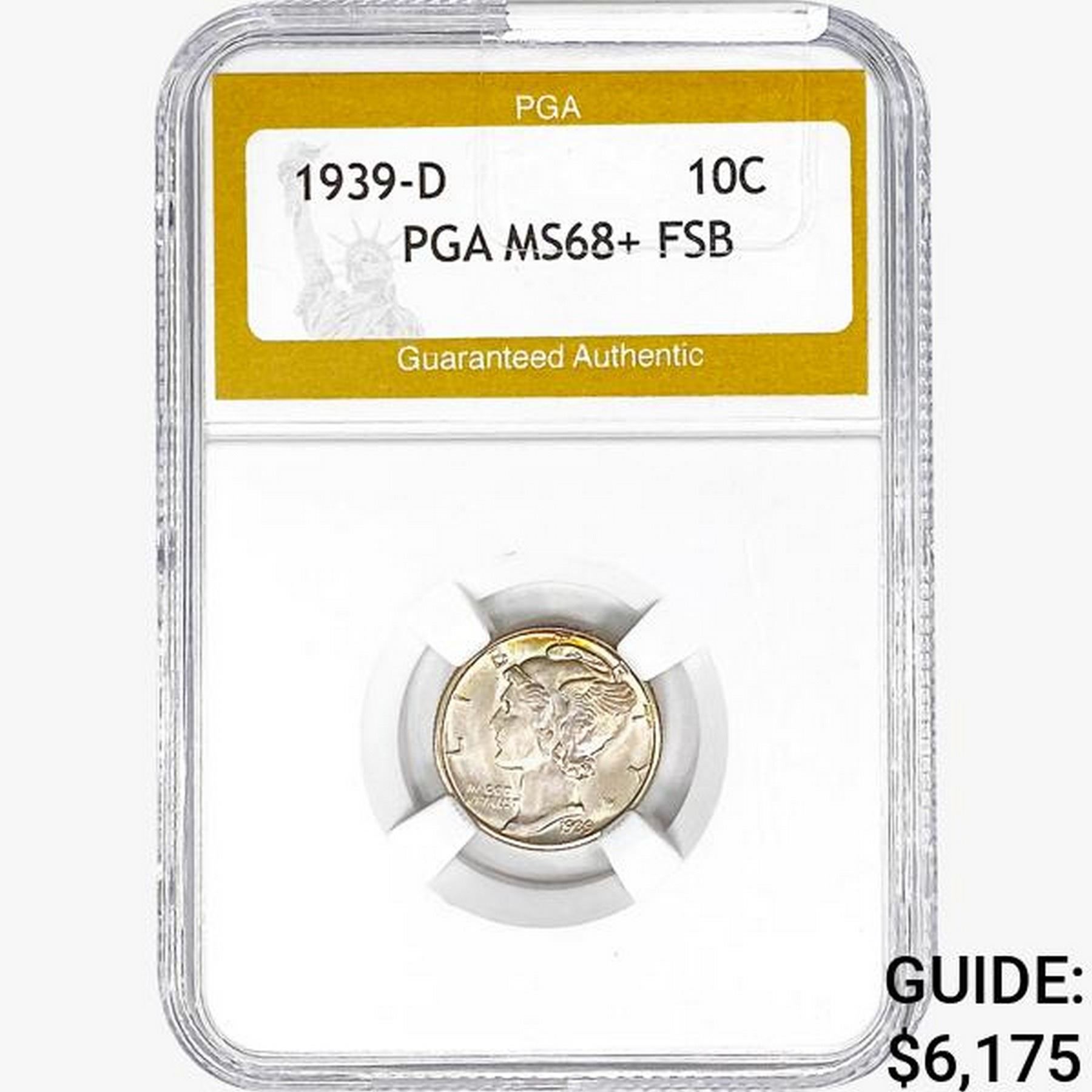 1939-D Mercury Silver Dime PGA MS68+ FSB