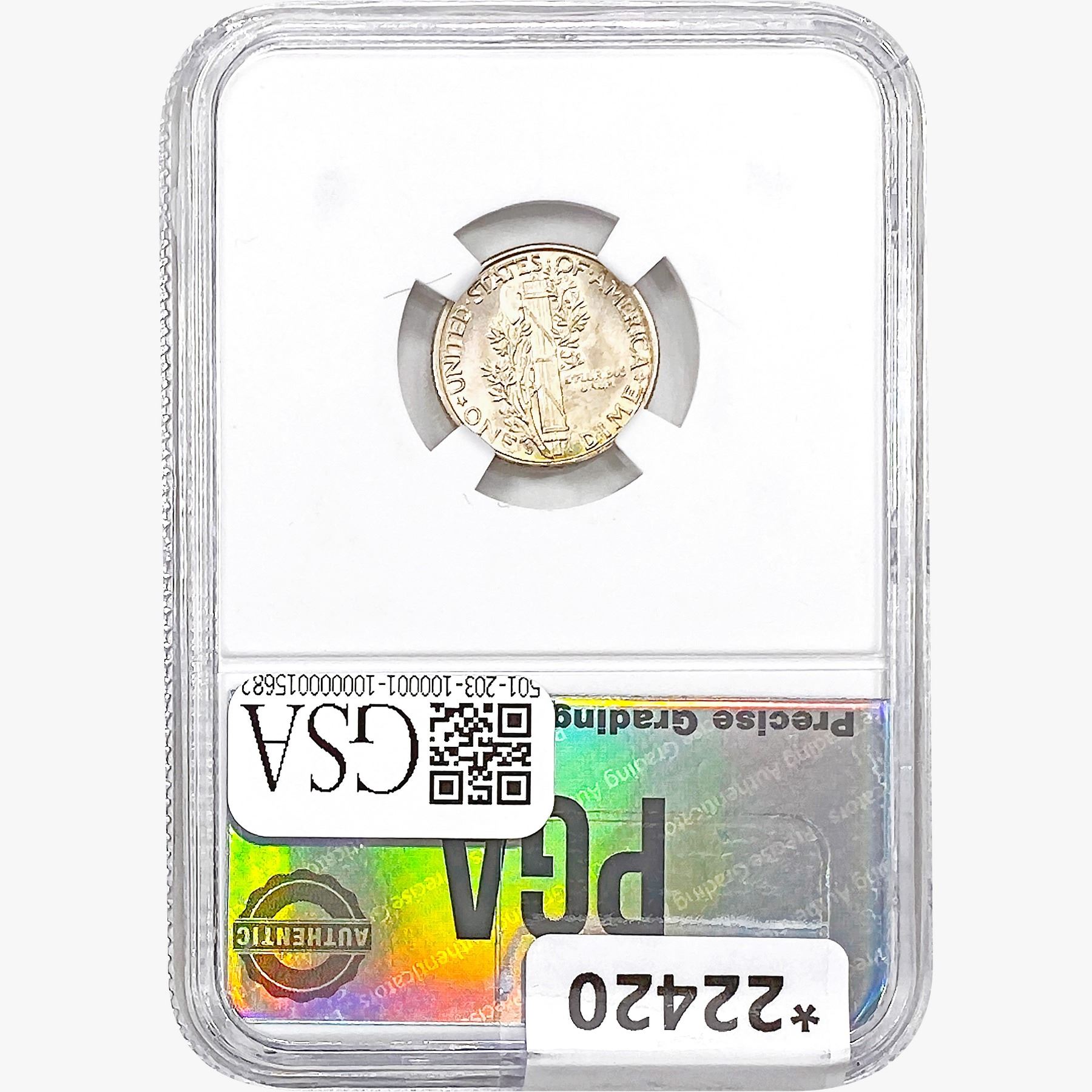 COINS AND CURRENCY LISTED IN GSA’S CATALOG AS GRADED AND ENCAPSULATED BY PCGS, NGC, ANACS, ICG, PCGS CURRENCY, PMG, PCGS BANKNOTE GRADING, CMC OR ANY OTHER THIRD-PARTY GRADING SERVICE ARE LIKEWISE SOLD “AS-IS” EXCEPT AS EXPRESSLY SET FORTH HEREIN. ALL THIRD-PARTY GRADING SERVICE GUARANTEES, INCLUDING AUTHENTICITY, ARE THE SOLE RESPONSIBILITY OF THE THIRD-PARTY GRADING SERVICE AND NOT WARRANTIES OR GUARANTEES OF GSA. BIDDERS SHOULD CONTACT THESE THIRD-PARTY GRADING SERVICES DIRECTLY WITH RESPECT TO ANY CLAIMS OR QUESTIONS THEY MAY HAVE CONCERNING THEIR GUARANTEES AND WARRANTIES. BIDDERS ACKNOWLEDGE AND AGREE THAT AUCTIONEER IS NOT BOUND BY OR LIABLE FOR ANY OPINION OR CERTIFICATION BY ANY THIRD-PARTY GRADING SERVICE. REMOVAL OF A PRODUCT FROM ITS PROTECTIVE CASING OR HOLDER OR ALTERATION OF ANY COIN HOLDER WAIVES ALL RIGHTS CONCERNING THE PRODUCT CONTAINED THEREIN.
