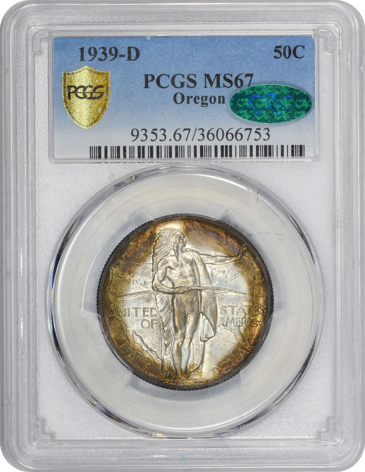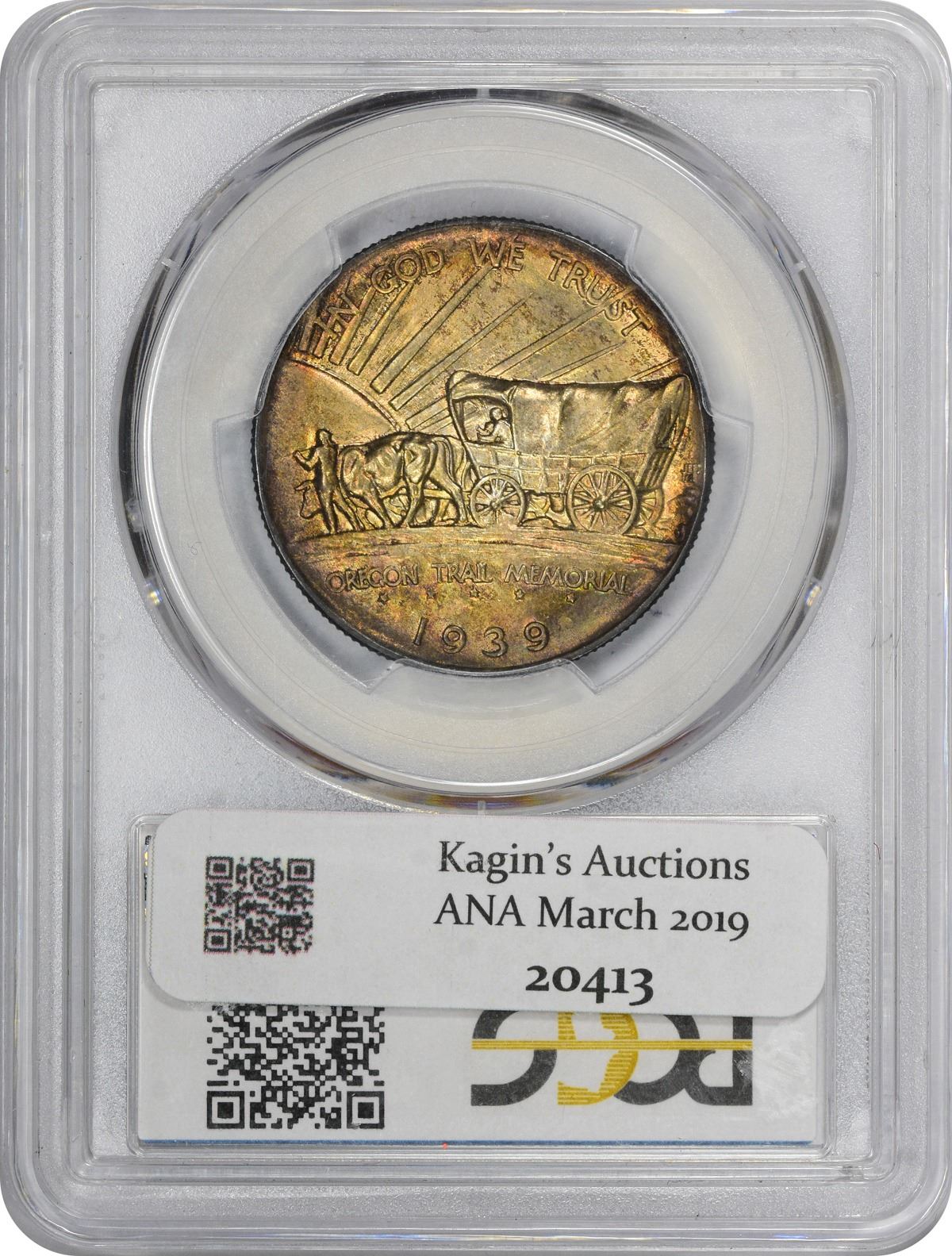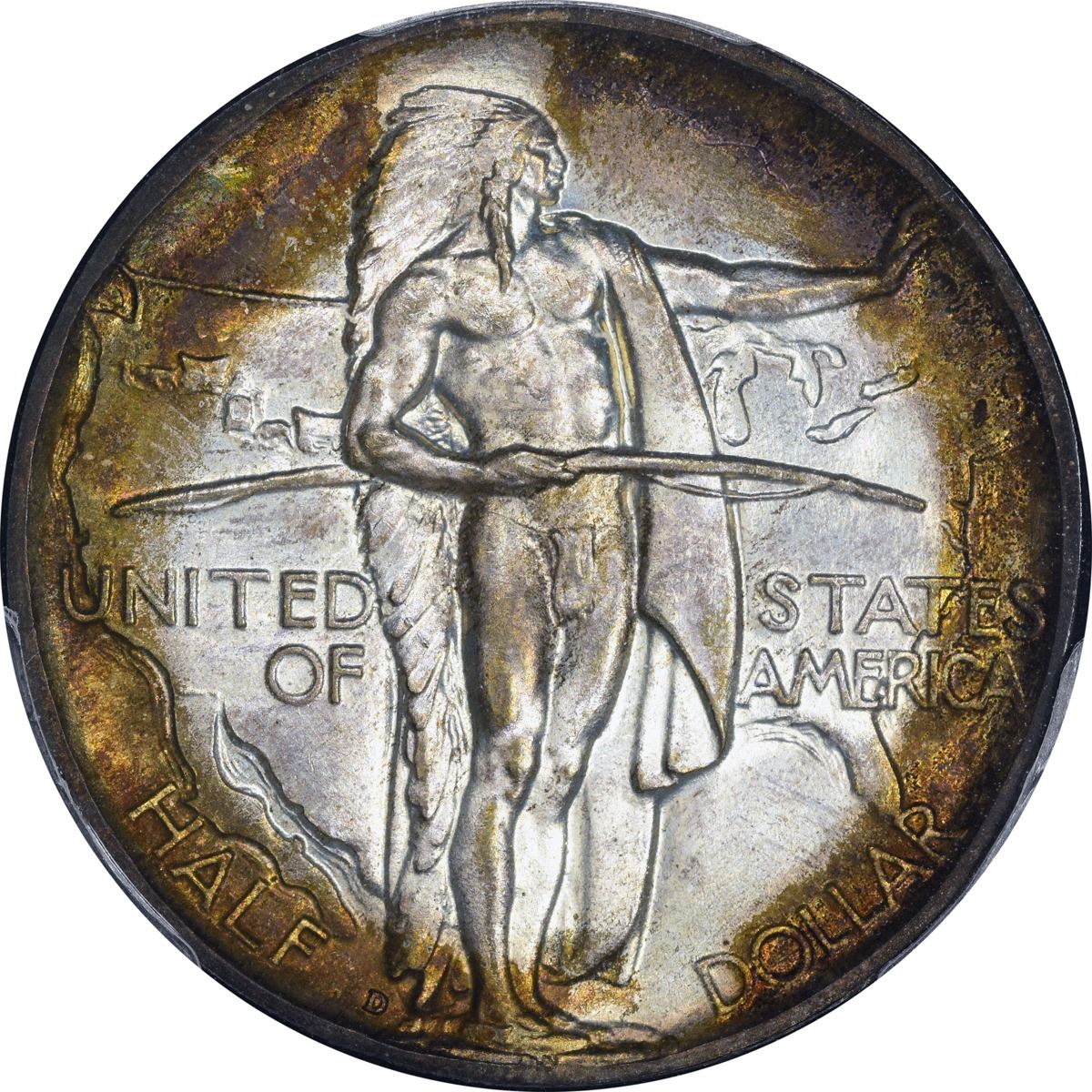 An exquisite gem with satiny surfaces that play host to richly varied and deeply steeped gold and crimson toning highlights along with exceptional cartwheel luster. The obverse -- for those unfamiliar with the original packaging for this issue – offers a deep gathering of crimson toning at the rim, earned from possibly decades in the original tab-style cardboard holder much of the mintage was offered in at the time, all around a brilliant silver center. The reverse offers an even sheen of richly active and varied peach-orange iridescence. Simply beautiful and apt to demand attention from several commemorative half dollar devotees! PCGS #9353