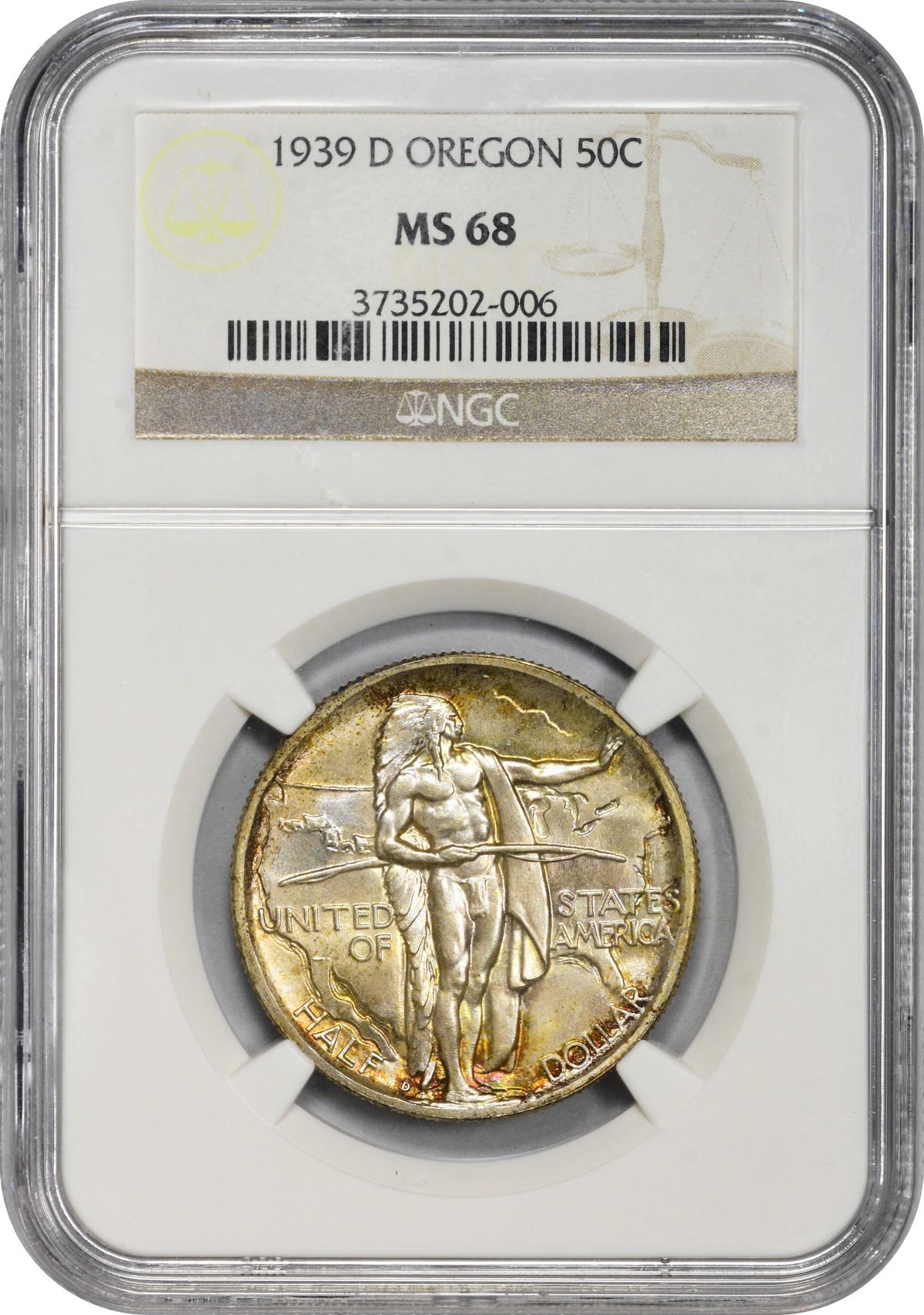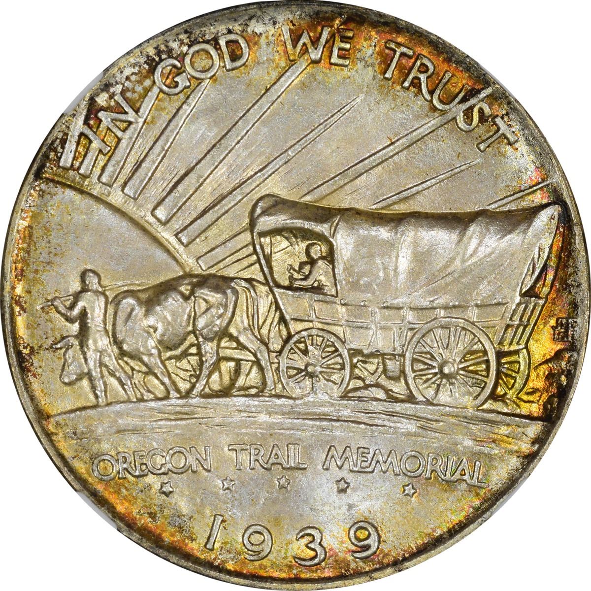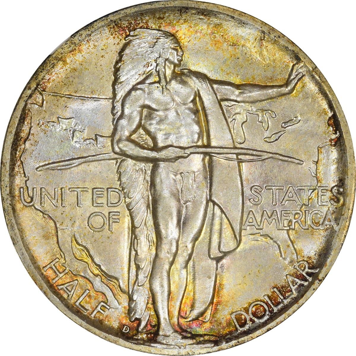 Perhaps the epitome of quality and beauty for the date, this satiny pale lilac-silver gem is alive with luster, and ranking high on the eye appeal charts in several categories. The strike is superb on the devices, just as Laura Gardin Fraser intended it to be, and a wealth of vibrant crimson and deeply varied orange iridescence engages the rims. One of 3,004 examples of the date and design type distributed, often in three-piece sets along with the Philadelphia and San Francisco issues. Tied for finest example of the issue seen by NGC, and deservedly so – it is a challenge to find a mark or abrasion of any size on the impressive surfaces. NGC Census: 31; none finer. 9 of the 31 are designated “+” by NGC.