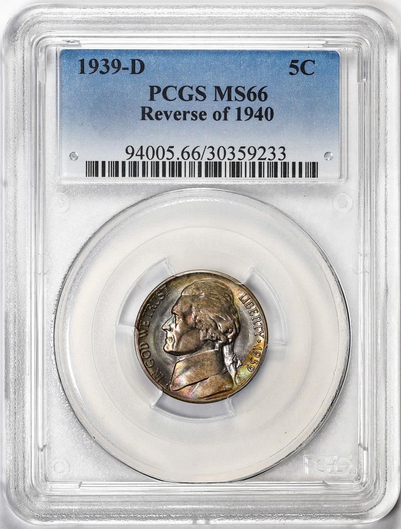 One 1939-D Reverse of 1940 Jefferson Nickel Coin PCGS MS66 Great Toning. PCGS Graded.