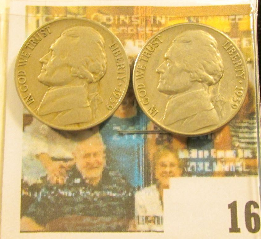 1939 D & S Jefferson Nickel pair, VF.
