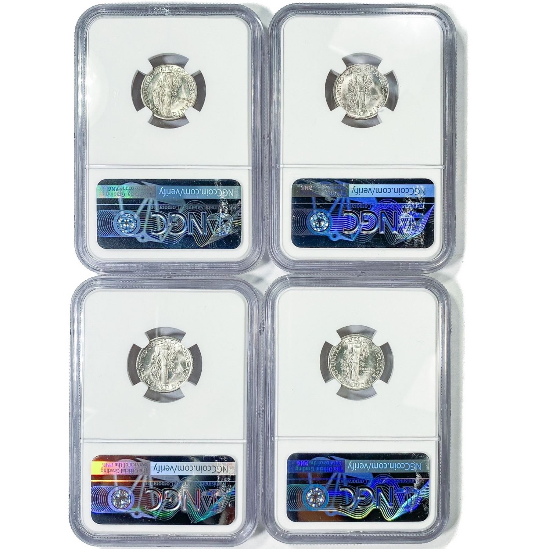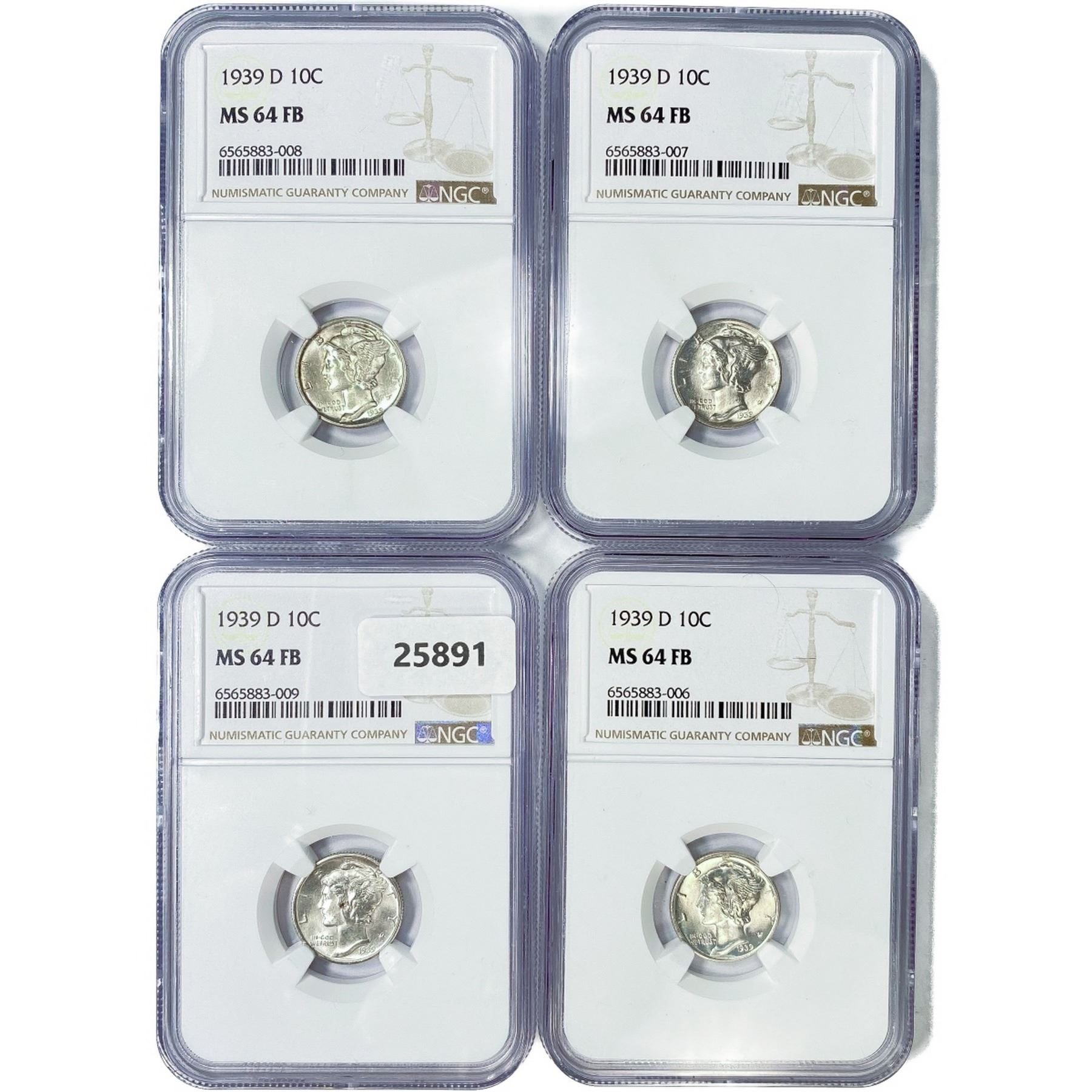 1939-D Set (4) Mercury Silver Dime NGC MS64 FB