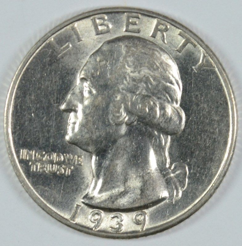1939-D WASHINGTON QUARTER, MS-64 NICE WHITE COIN