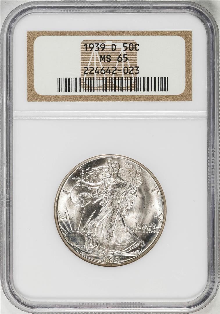 One 1939-D Walking Liberty Half Dollar Coin NGC MS65. NGC Certified.