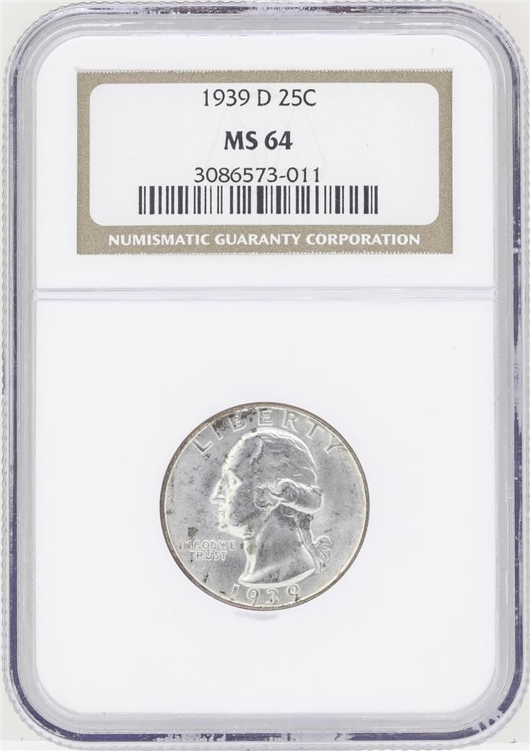 One 1939-D Washington Quarter Silver Coin NGC MS64. NGC Certified.