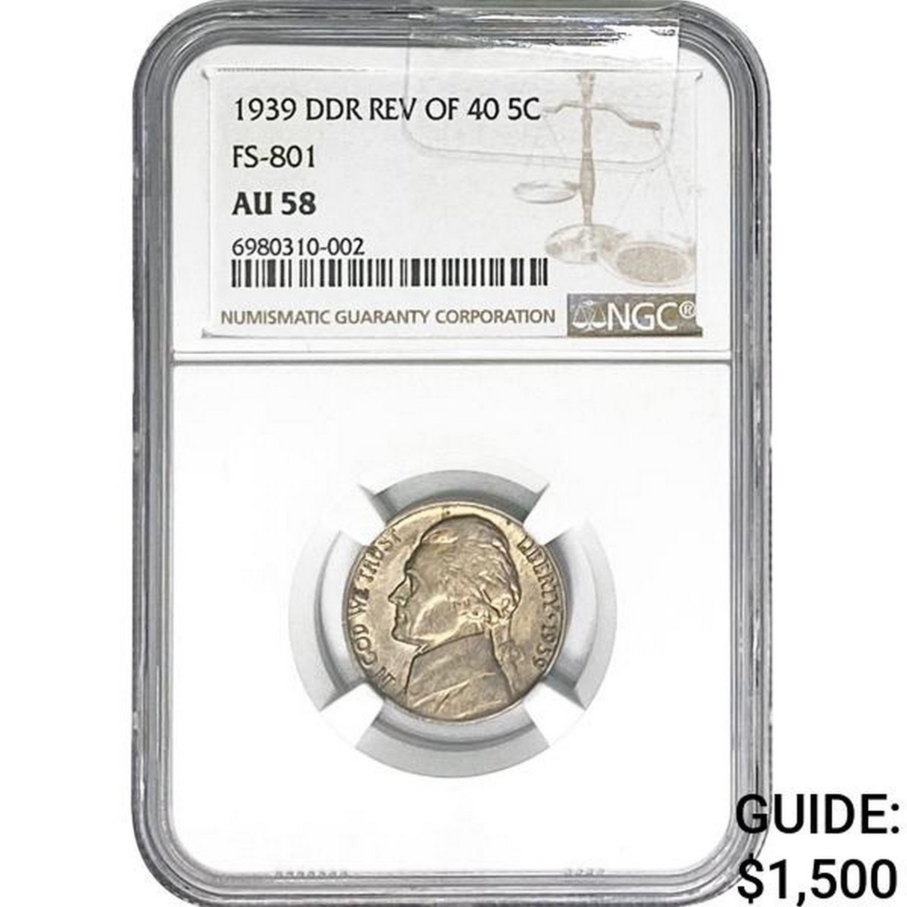 1939 DDR REV OF 40 Jefferson Nickel NGC AU58 FS801