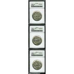 <B>1939<img border='0' src='http://www.heritagecoins.com/images/star.gif' width=10 height=10>ET Oregon PDS Set MS64 ANACS.</B></I> The set includes: <B>1939,</B></I> exquisitely struck, a few freckles of golden-brown color; <B>1939-D,</B></I> a reasonable strike, unabraded; and a <B>1939-S,</B></I> well struck, undisturbed silver-gray color. The lowest mintage PDS set of the long-lived type. 3 Coins