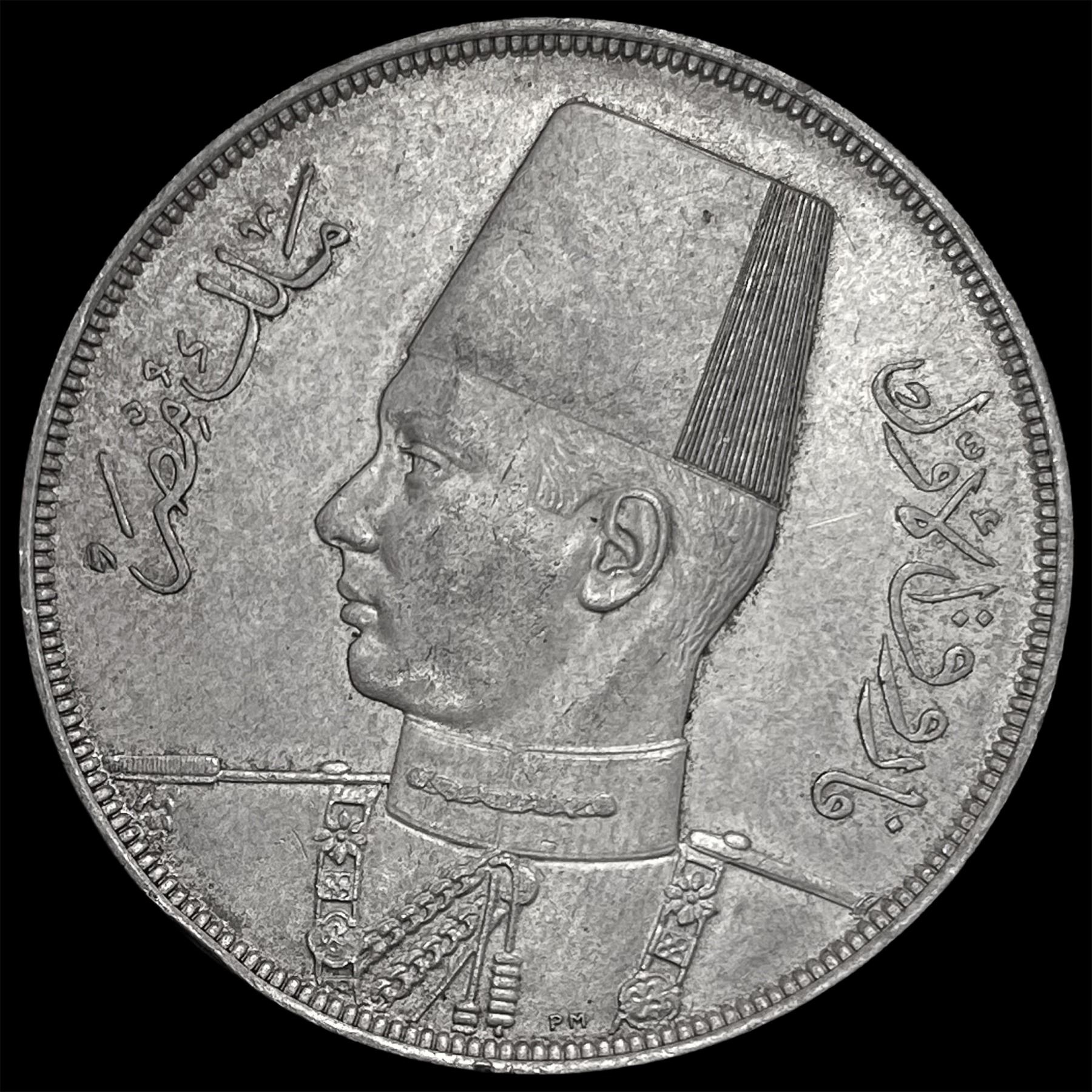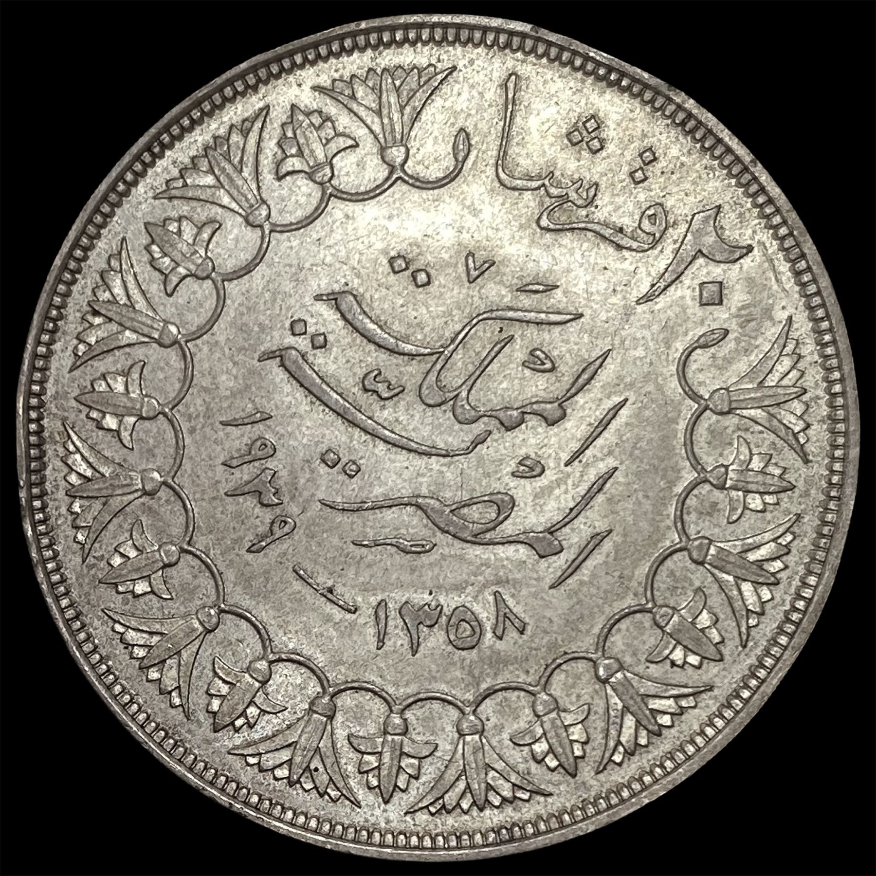 1939 Egypt Farouk Silver 20 Piastres NEARLY UNCIRCULATED