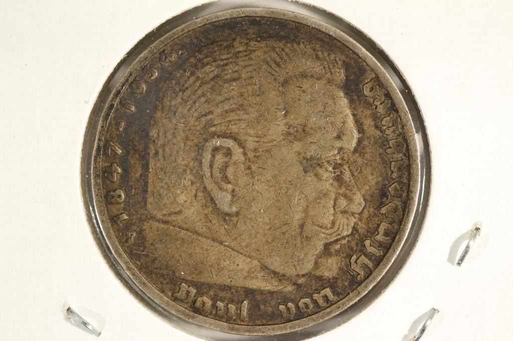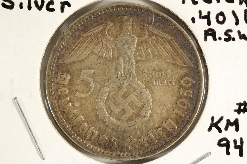 1939-F GERMAN SILVER 5 MARK WITH SWASTIKA