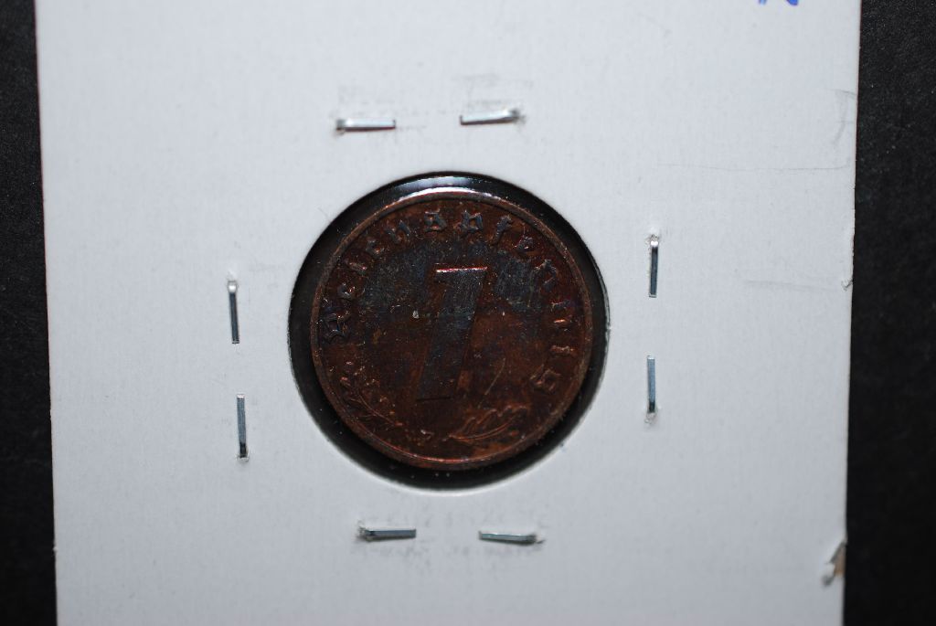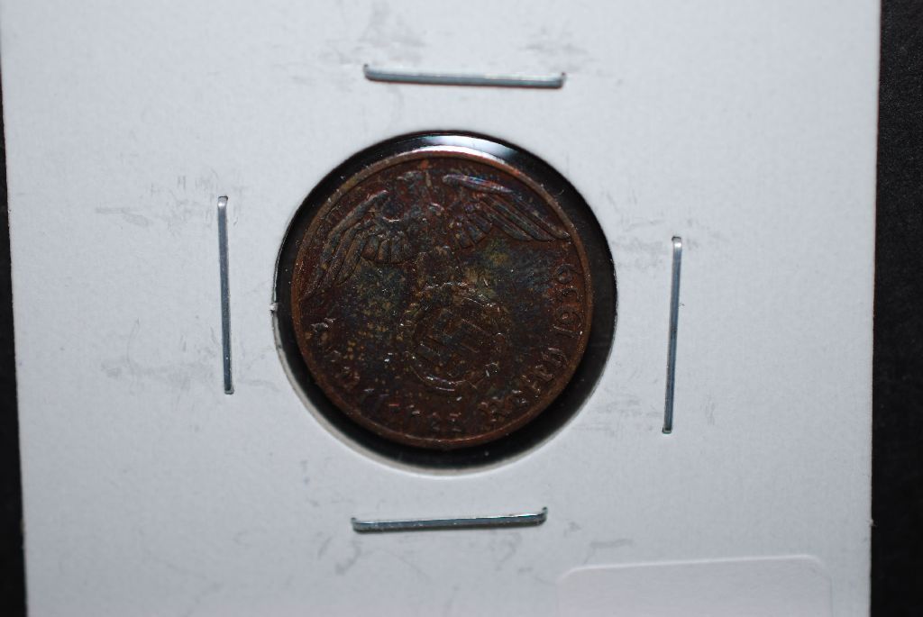 1939-F German 1 Reichspfennig Foreign Coin With Flying Eagle Holding Swatstika; EST. $5-15
