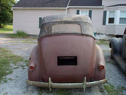 CABRIOLET, COMPLETE CAR, TOP HAS BEEN REPLACED AND IS GOOD, INTERIOR IS COMPLETE AND OK, MOTOR WAS REBUILT PREVIOUSLY- UNSURE IF RUNS OR STUCK AT THIS TIME. IN PRIMER HAS WRONG TAILLIGHTS, VERY LITTLE RUST, BEEN INSIDE, INTERIOR IS RED-BLUE-COMPLETE-FLATHEAD V-8-STICK