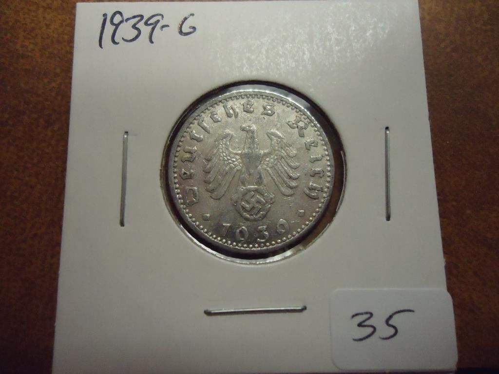1939-G GERMAN 50 PFENNIGS WITH SWASTIKA