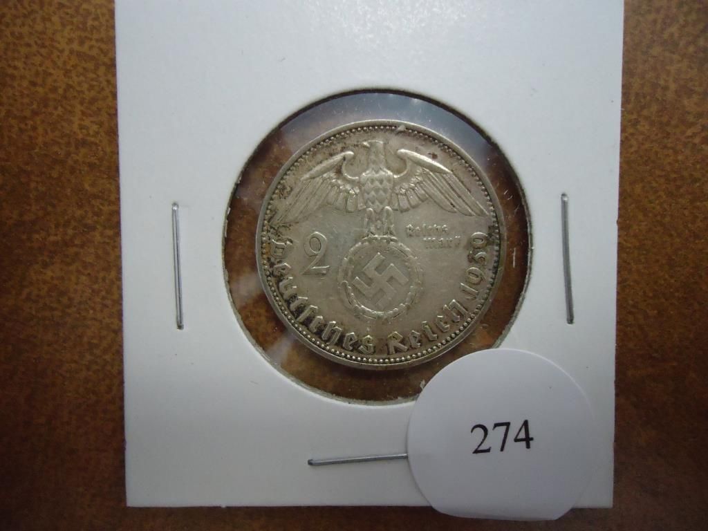 1939 GERMAN SILVER 2 MARKS WITH SWASTIKA