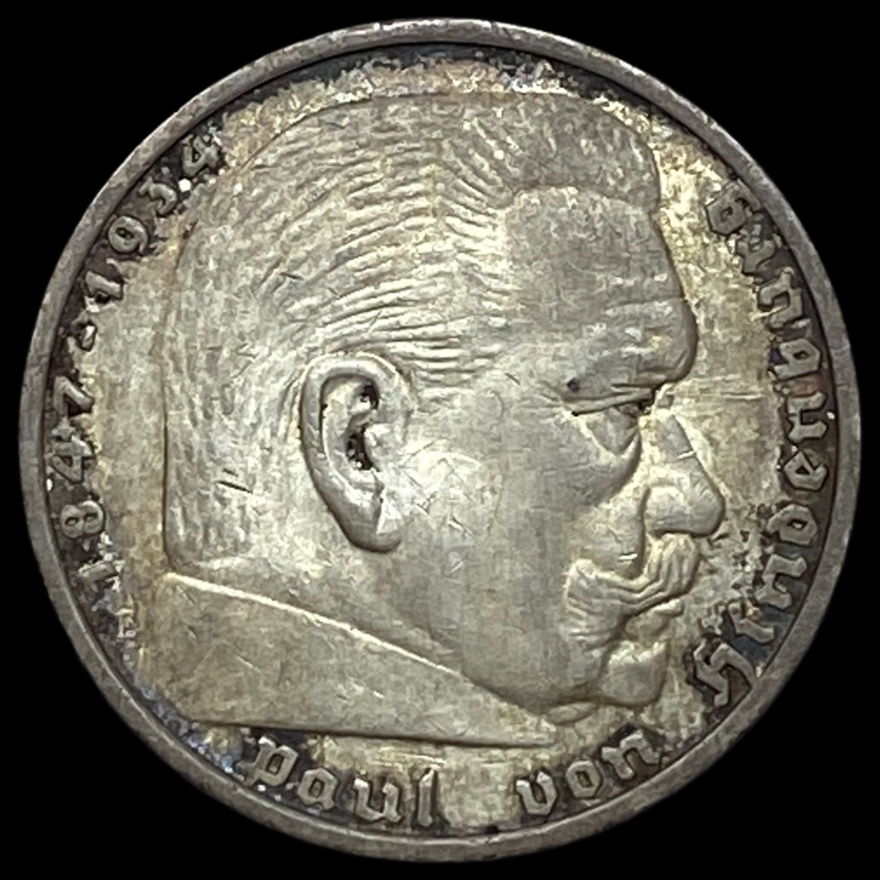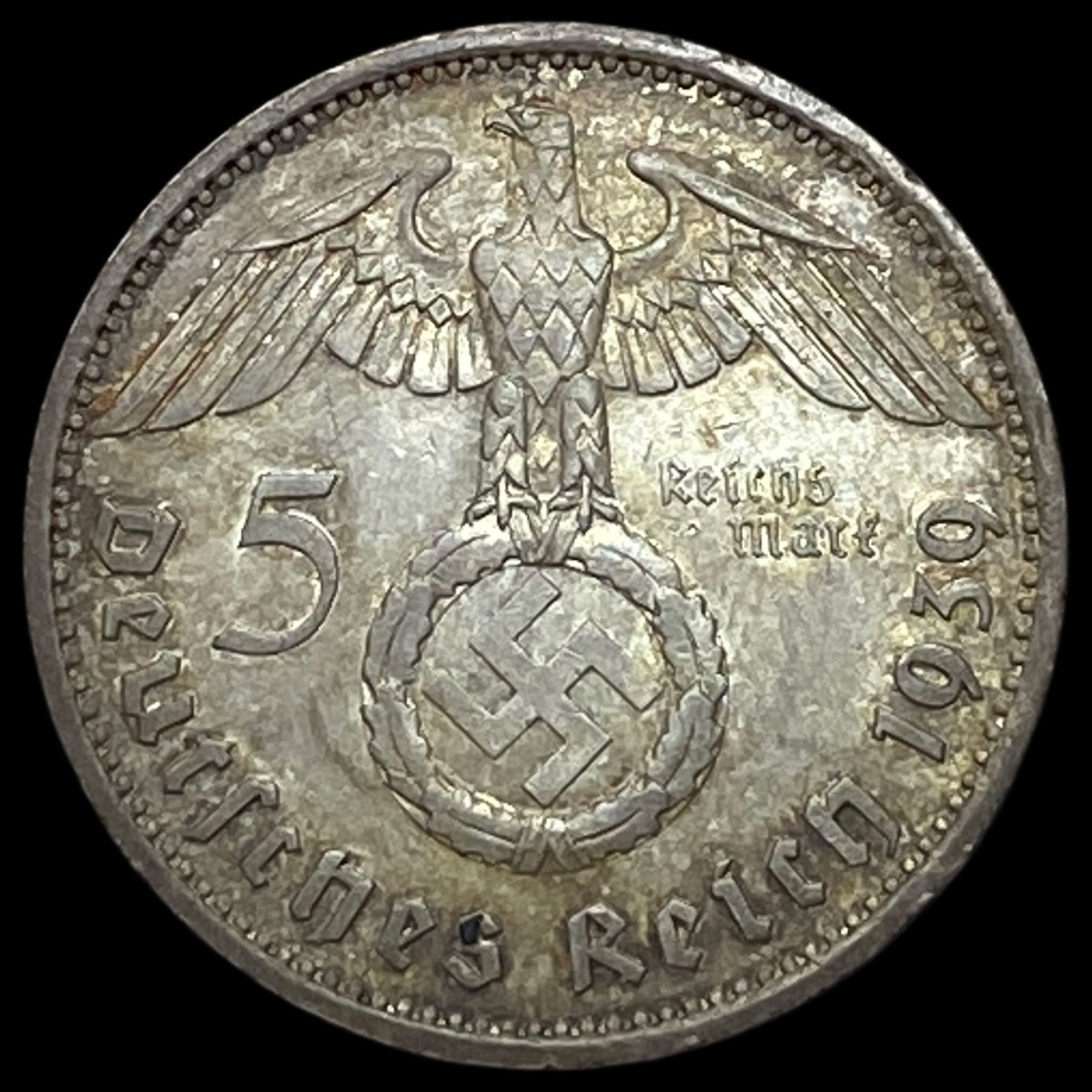 1939 Germany Silver 5 Reichsmark CLOSELY UNCIRCULATED