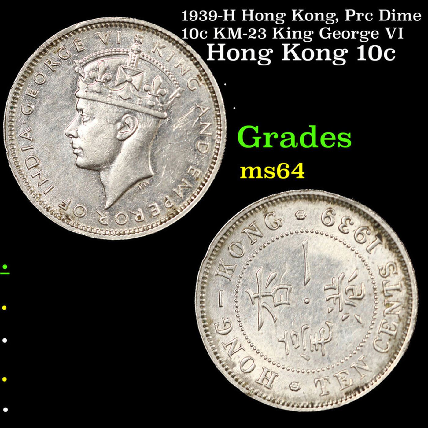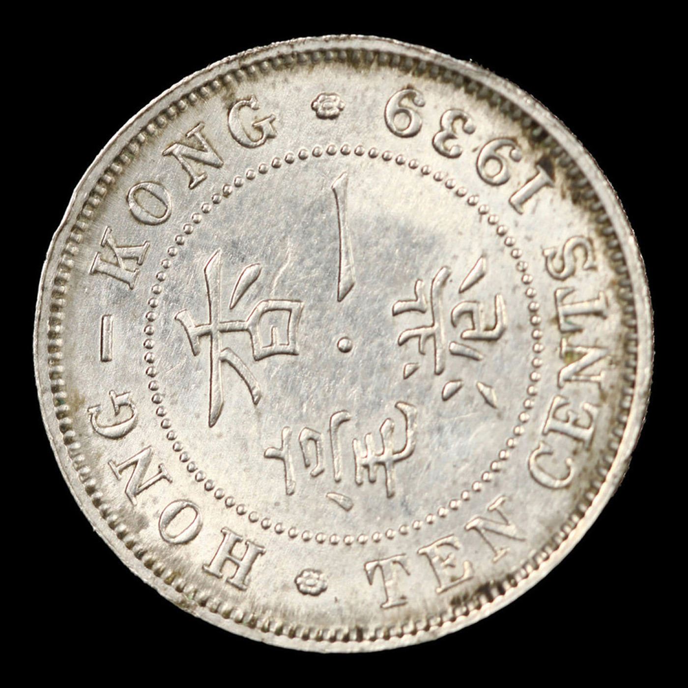 1939-H Hong Kong, Prc Dime 10c KM-23 King George VI Grades Choice Unc.
