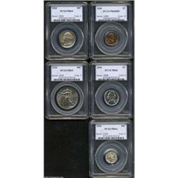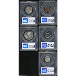 <table><tr><td><TABLE cellSpacing=0 cellPadding=0 width="100%" bgColor=#000000 border=0><TBODY> <TR><TD width="100%"><TABLE cellSpacing=1 cellPadding=3 width="100%" border=0><TBODY><TR><TD width="100%" bgColor=#79735c><FONT face=arial color=#ffffff size=3><B>Description</B> </FONT></TD></TR><TR><TD width="100%" bgColor=#ffffff><FONT face=arial size=2><B>A 1939 Proof Set PR65 to PR66 PCGS.</B></I> The set includes: <B>1939 Cent PR64 Red,</B></I> well struck and lightly toned, with a few tiny specks on the upper reverse; <B>1939 Nickel PR66,</B></I> a razor-sharp strike, a small amount of scattered milky patina, and a few carbon specks; <B>1939 Dime PR64,</B></I> fully struck with rose, apricot, and russet mottling on the cream-colored surfaces, there is a faint S-shaped pinscratch in the upper right reverse field; <B>1939 Quarter PR64,</B></I> fully detailed with an attractive coating of variegated patina, and a short pinscratch beneath Washington's nose; and a <B>1939 Half Dollar PR65,</B></I> an awesome strike and beautiful deep patina, with lovely unmarked surfaces. (5 Coins) </FONT></TD></TR></TBODY></TABLE></TD></TR></TBODY></TABLE><BR><A name=PricesRealized></A><TABLE cellSpacing=0 cellPadding=0 width="100%" bgColor=#000000 border=0><TBODY><TR><TD width="100%"><TABLE cellSpacing=1 cellPadding=3 width="100%" border=0><TBODY><TR><TD width="100%" bgColor=#79735c><A name=PR><FONT face=arial color=#ffffff size=3><B>Previous Prices from Heritage Auctions</B> </FONT></A></TD></TR><TR><TD bgColor=#f6f6ed>No Prior Data Recorded </TD></TR><TR><TD bgColor=#ffffff><FONT face=arial size=1 ?>PLEASE NOTE: All prices realized reflect the final hammer price PLUS the buyer's premium in auctions that charge a buyer's premium. Each item has a notation at the top of the listing indicating whether that lot included a buyer's premium. Example: A item that sells with a final hammer price of $100 and a 20% buyer's premium will display with a price realized of $120. All information listed is intended to be as accurate as possible, but errors are possible. Please use this guide carefully and inform us of any inaccuracies. </FONT></TD></TR></TBODY></TABLE></TD></TR></TBODY></TABLE><BR><TABLE cellSpacing=0 cellPadding=0 width="100%" bgColor=#000000 border=0><TBODY><TR><TD width="100%"><TABLE cellSpacing=1 cellPadding=3 width="100%" border=0><TBODY><TR><TD width="100%" bgColor=#79735c colSpan=6><FONT face=arial color=#ffffff size=3><B>Price Guide*</B> </FONT></TD></TR><TR bgColor=#f6f6ed><TD align=middle><B>Grade</B> </TD><TD align=middle><B>Coin World<BR>(Trends)</B> </TD><TD align=middle><B>Numismedia<BR>Retail</B> </TD><TD align=middle><B>Numismedia<BR>Wholesale</B> </TD><TD align=middle><B>Coin<BR>Universe</B> </TD><TD align=middle><B>Heritage<BR>Value Index</B> </TD></TR><TR><TD colSpan=6>No Pricing Data Available</TD></TR><TR bgColor=#ffffff><TD colSpan=6><FONT size=1>*All information listed is intended to be as accurate as possible, but errors are possible. No item may be returned or refused based on this information which is provided as a service to our customers. You should contact each pricing source directly to determine the accuracy of this information. </FONT></TD></TR></TBODY></TABLE></TD></TR></TBODY></TABLE><BR><TABLE cellSpacing=0 cellPadding=0 width="100%" bgColor=#000000 border=0><TBODY><TR><TD width="100%"><TABLE cellSpacing=1 cellPadding=3 width="100%" border=0><TBODY><TR><TD width="100%" bgColor=#79735c><FONT face=arial color=#ffffff size=3><B>Population Guide</B> </FONT></TD></TR><TR bgColor=#ffffff><TD align=middle></TD></TR></TBODY></TABLE></TD></TR></TBODY></TABLE><BR><TABLE cellSpacing=0 cellPadding=0 width="100%" bgColor=#000000 border=0><TBODY><TR> 5 Coins Important notice: Heritage usually auctions material at the rate of 200-250 lots per hour. On some occasions eBay Live bid software or the Internet may not be able to keep up with the pace of the auction. We recommend placing a realistic absentee bid now as insurance to avoid disappointment. Occasionally the auctioneer may eliminate or reject an eBay Live bid, and the auctioneer may also reopen a lot after the close of the eBay live bidding (usually because we missed an audience bid), and may reject your bid even if it shows you as the winning bidder. By bidding via eBay Live, you agree that Heritage may award the lot to another bidder at its sole discretion under the circumstances described above or any other reasonable circumstances. Also please note that all Heritage lots purchased through eBay Live carry a 20% Buyer's Premium. Please make sure you read the Terms and Conditions before you bid.</TD></TR></TBODY></TABLE></TD></TR></TBODY></TABLE>