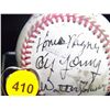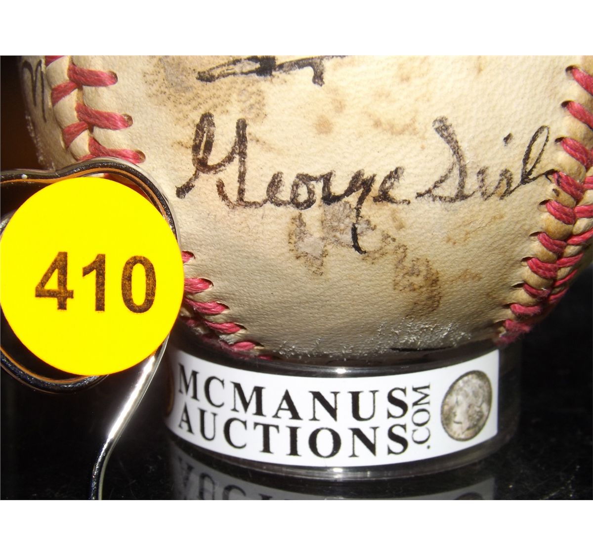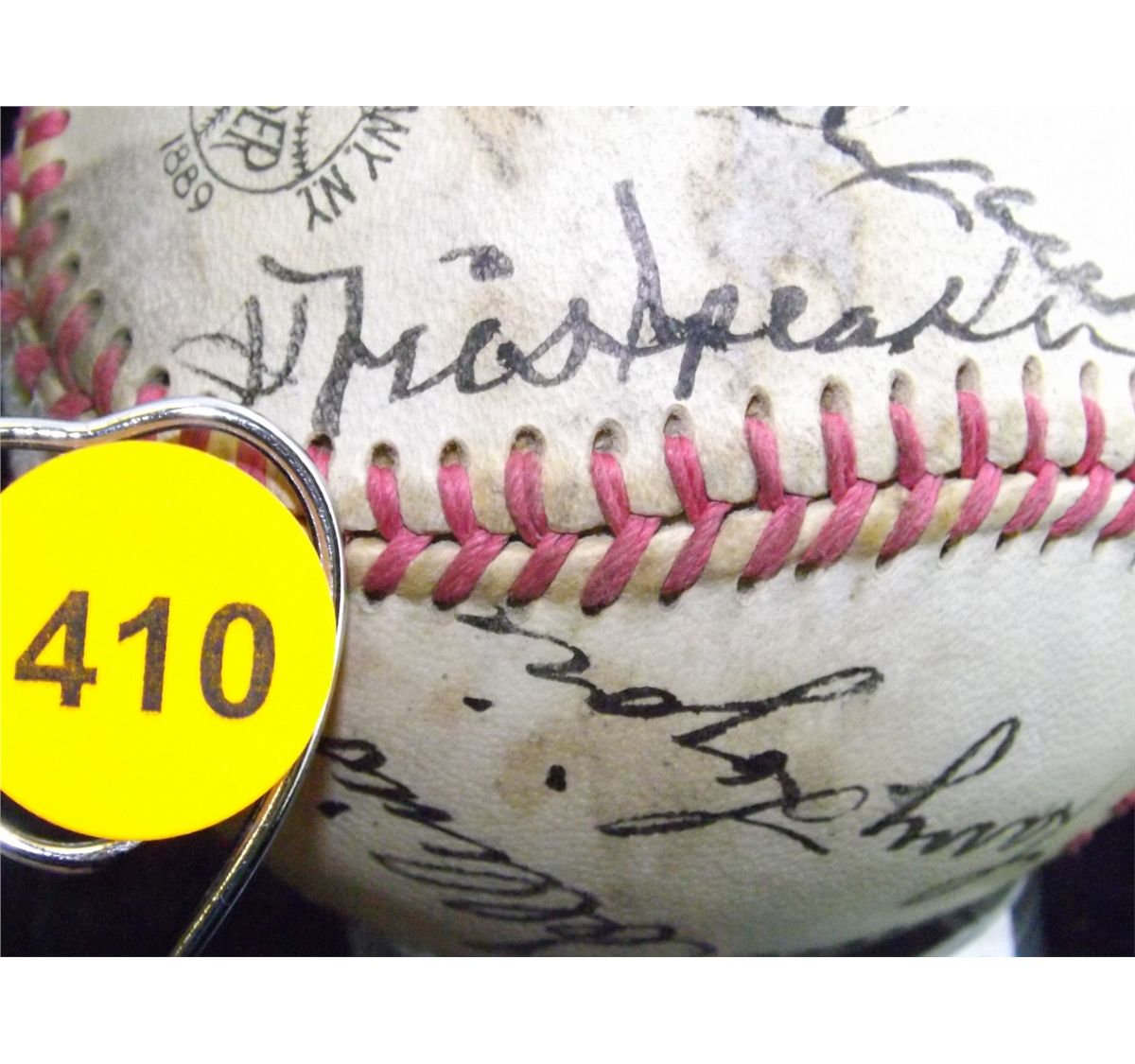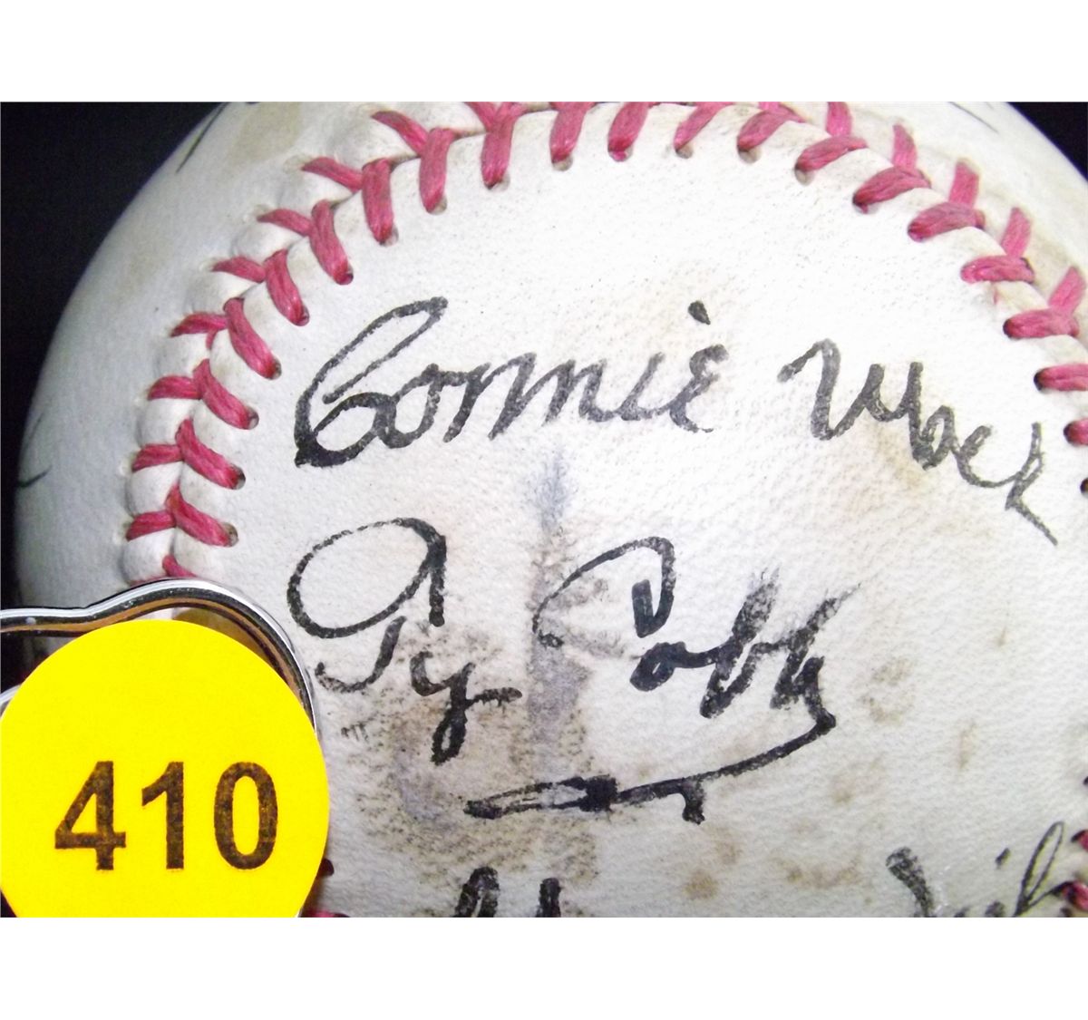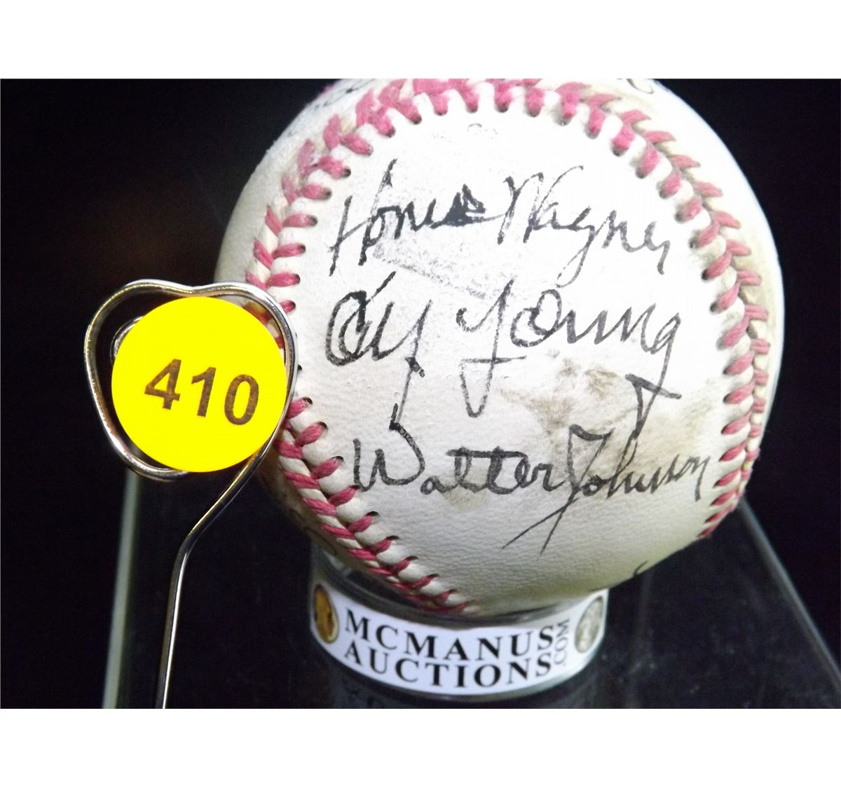 1939 Hall of Fame Induction Cooperstown Autographed Baseball. J. deBeer and Sons Double Header Ball Autographed by: Connie Mack, Ty Cobb, George Sisler, Eddie Collins, Larry Lajoie, Grover Alexander, Tris Speaker, Babe Ruth, Honus Wagner, Cy Young and Walter Johnson. Appraised or estimated retail value $175,000. COA by Christopher Morales. All Sales Final. Please see terms and conditions of auction.
