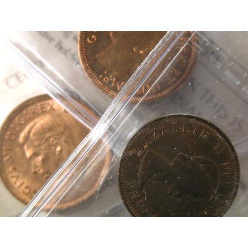 1939 ICCS MS-65 Red, over 90% red. Plus 1947 Maple Leaf ICCS MS-63 Red, over 90% red and 1953 Shoulder Fold ICCS MS-63 Red and Brown, about 20% red