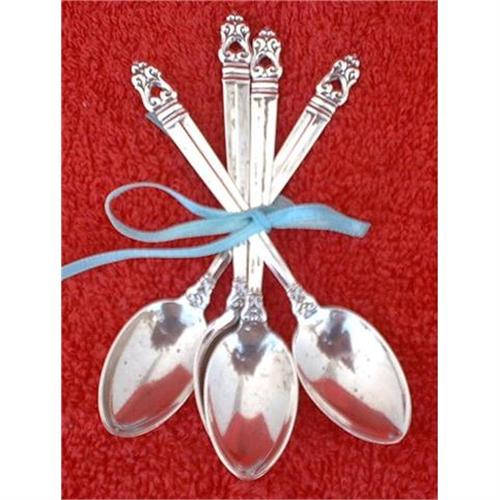 This is a set of four sterling demitasse spoons by International in the Royal Danish Pattern. A very pretty 1939 pattern and all in very good condition. It is wonderful to hold a piece of this silver in your hand and to realize that in this one piece you hold the reputation and skill of the mind and hands which created it.