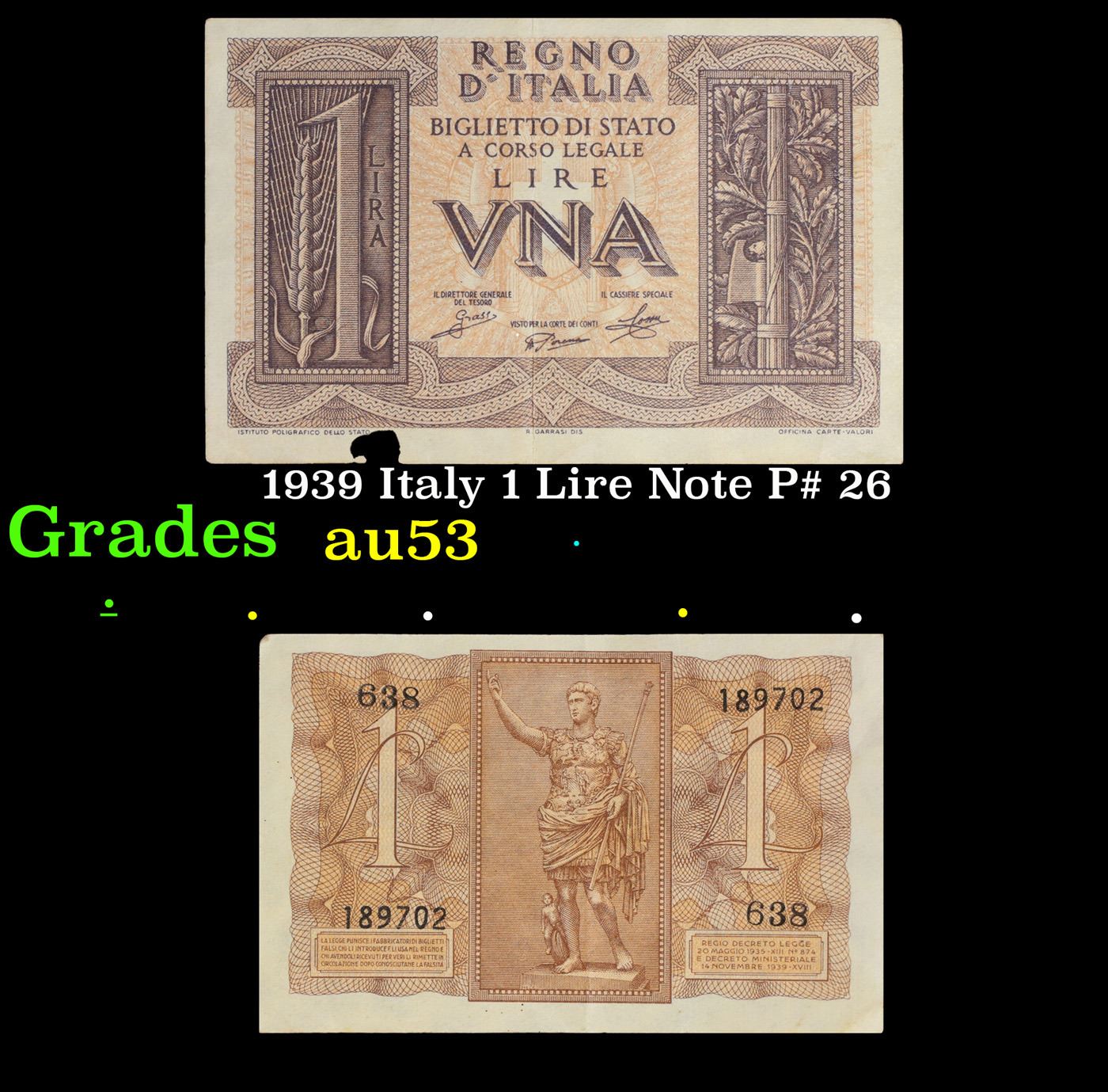 1939 Italy 1 Lire Note P# 26 Grades Select AU.