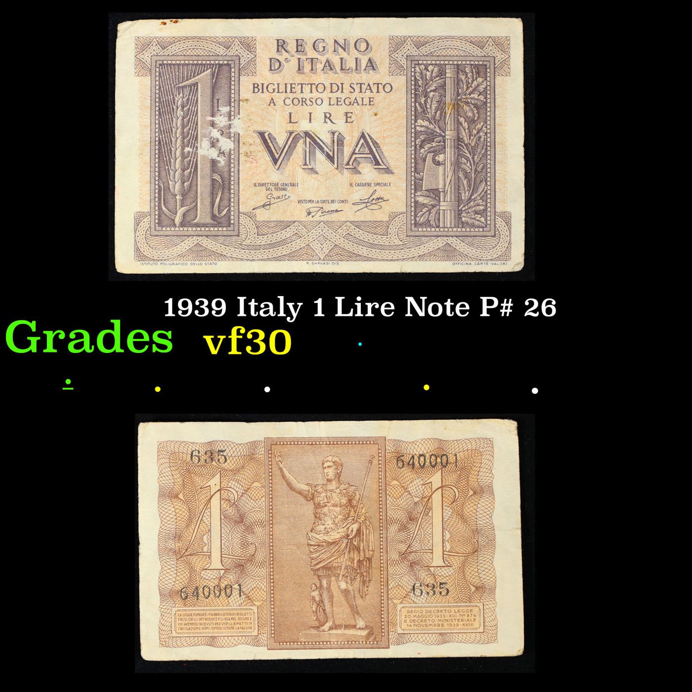 1939 Italy 1 Lire Note P# 26 Grades vf++.