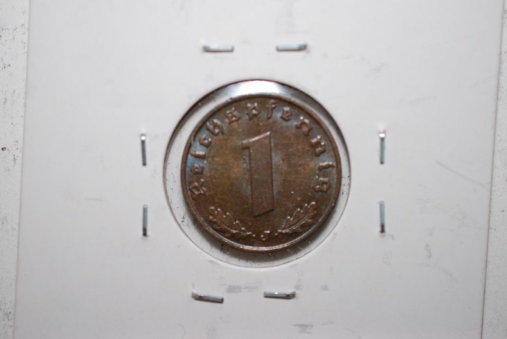 1939-J German 1 Reichspfennig Foreign Coin With Flying Eagle Holding Swatstika; BU; EST. $5-10