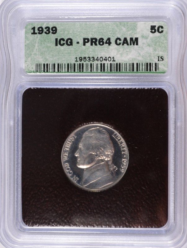1939 JEFFERSON NICKEL, ICG PROOF-64 CAM RARE!!