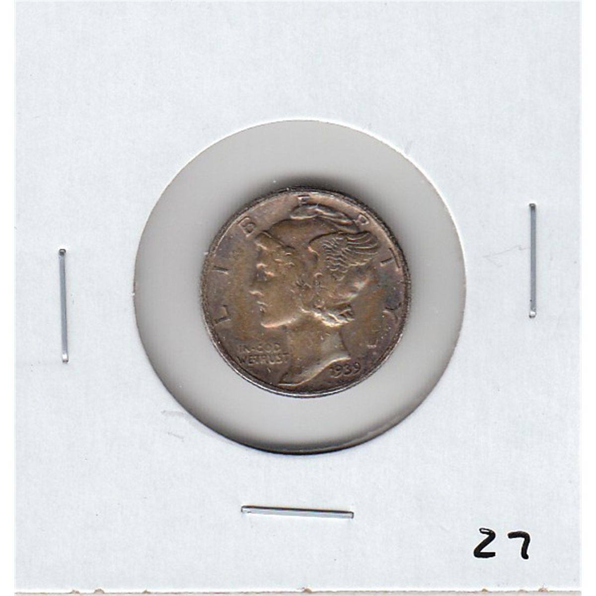 1939 MERCURY DIME BEAUTIFUL GREEN-MAGENTA TONING
