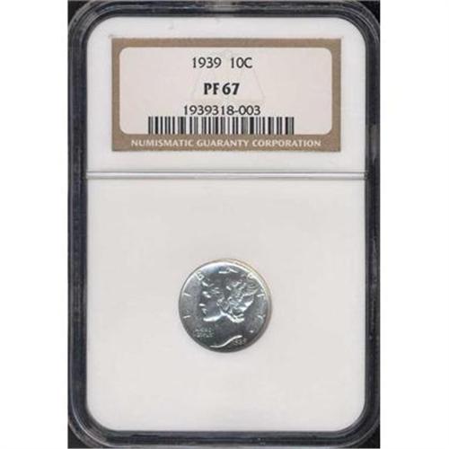 <b>1939 Mercury Dime. NGC graded Proof 67.</b> Mirror-deep surfaces that are seem to glow with a pleasant silver color. Devices are sharp in all areas, as struck, as desired by collectors, which the grading service has taken into consideration in assigning the Proof 67 grade, as also desired by collectors. Superb! <b>(PCGS # 5074)</b>