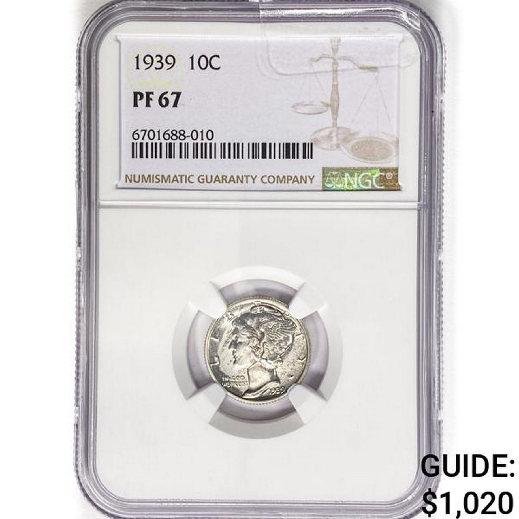 1939 Mercury Silver Dime NGC PF67