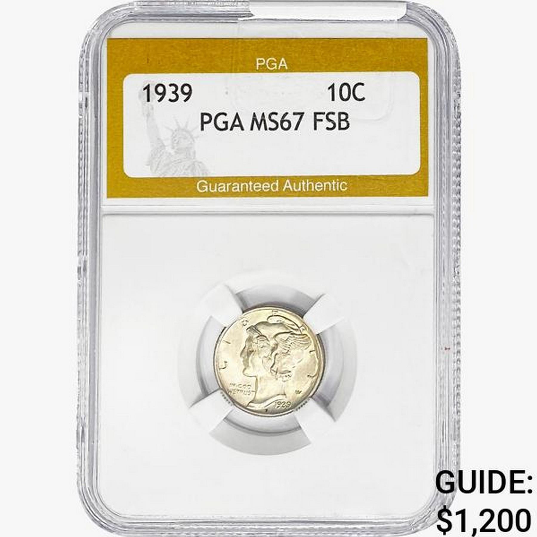 1939 Mercury Silver Dime PGA MS67 FSB